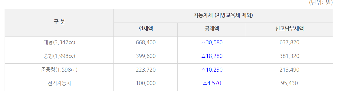 작년 자동차세를 연납(선납) 한 경우에는 올해 다시 신청하지 않아도 연세액 신고납부서가 자동 발송됩니다. 또 이번에 연납한 뒤에 올해 중으로 다른 시·도로 이사하더라도 새 주소지에서 자동차세를 추가로 납부하지 않아도 됩니다. 자동차세의 1월 연납 혜택은 자동차의 자동차세의 1월 연납 혜택은 자동차의 배기량에 따라 차이가 납니다. 예컨대 배기량이 3,342cc K사 신규 등록 자동차의 경우 30,580원, 1,598cc R사 신규 등록 차량은 10,230원을 공제받을 수 있습니다.