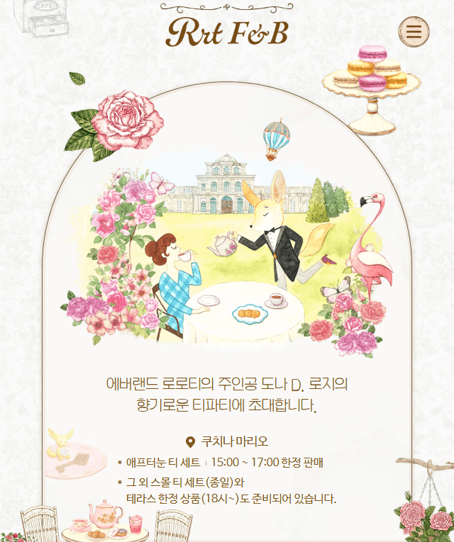 - 메인 콘셉트: ‘로즈가든 로열 하이티’ – 장미 정원 속 티파티
